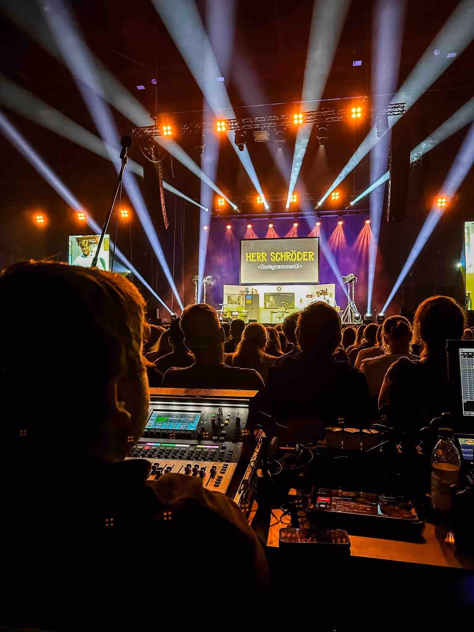 Wir arbeiten modular. Du kannst z. B. nur Lichttechnik, nur ein:e Tontechniker:in oder nur Projektleitung buchen.